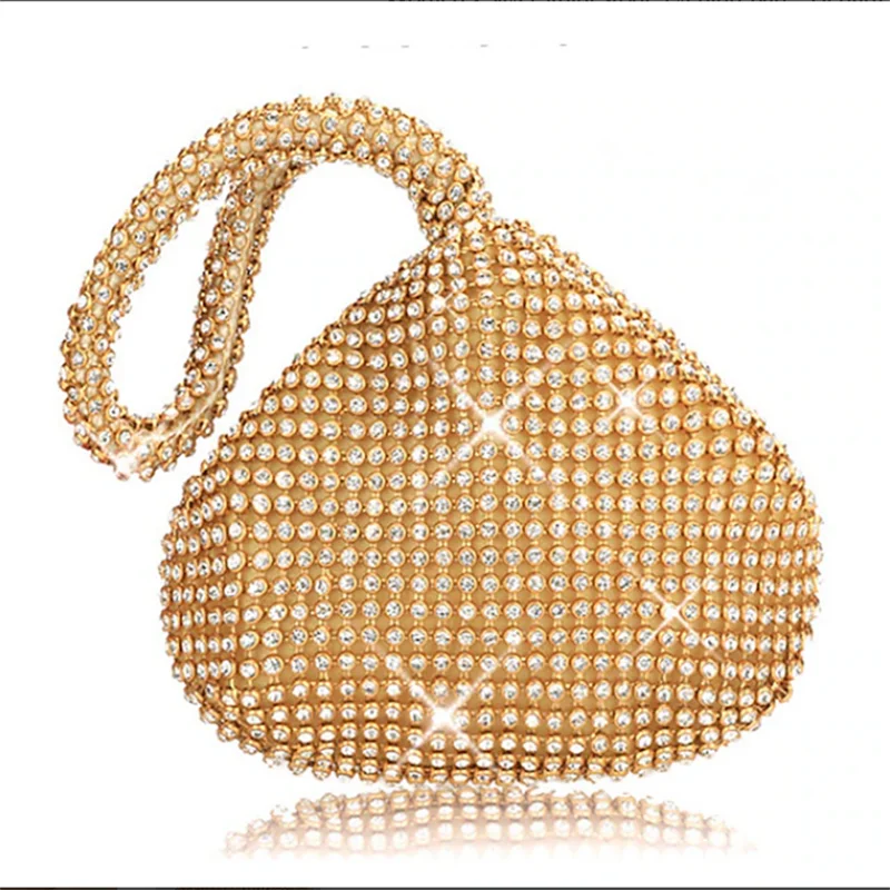 Złota Torebka Kopertówka z Diamentami, Błyszcząca Wieczorowa Torebka, Mała Modna Torebka z Łańcuszkiem z Diamentami dla Kobiet, Dodatki na Przyjęcia Weselne