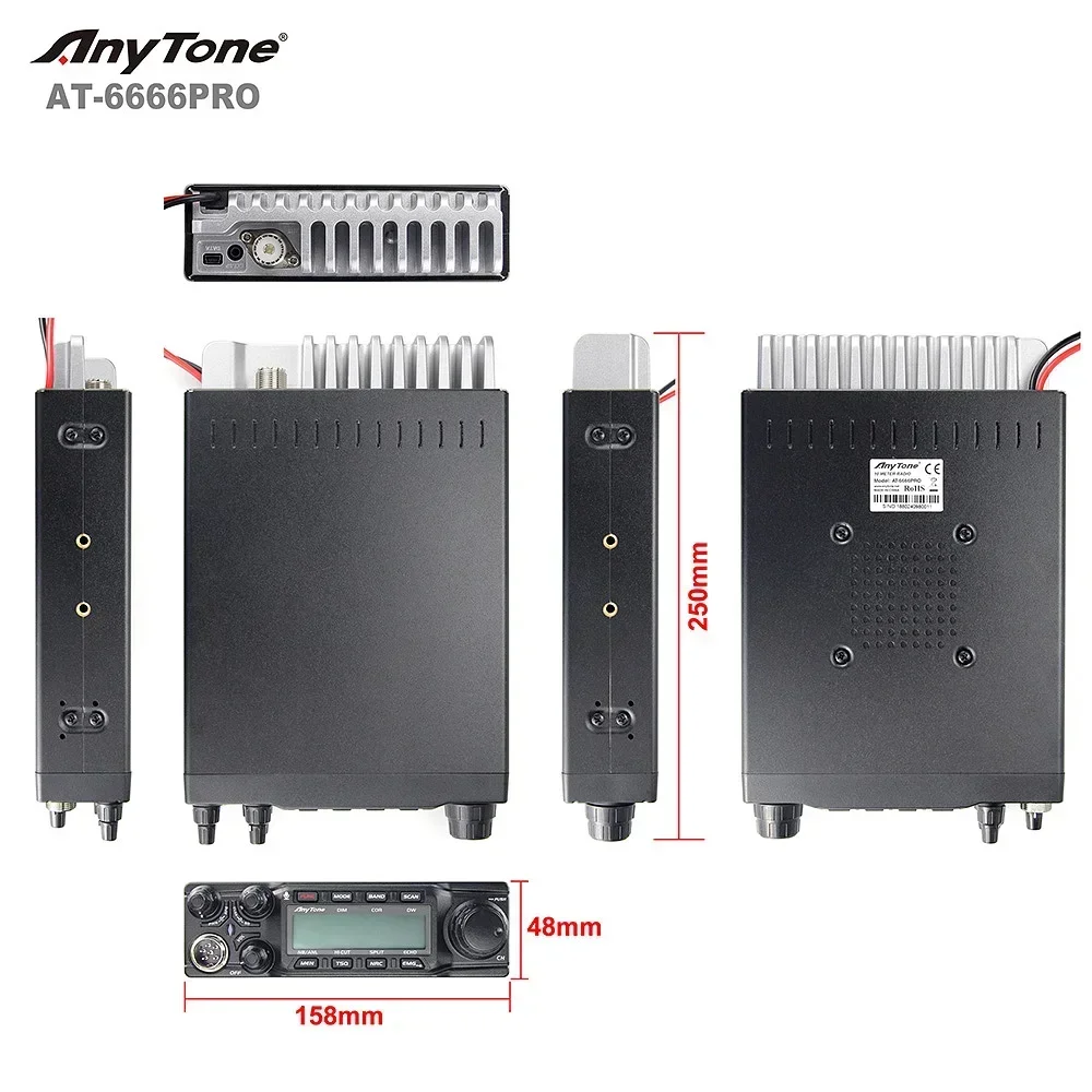 Radiotelefon AnyTone AT-6666PRO 80W SSB do montażu w pojeździe, wysokiej mocy, rok 2024