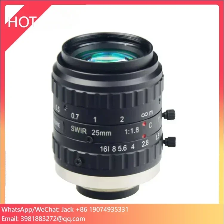 Obiektyw CCTV 1 cal F1.8 z ręczną przysłoną, 25mm, krótkoogniskowy, IR SWIR, o niskim zniekształceniu, mocowanie C, do kamer systemów wizji przemysłowej.