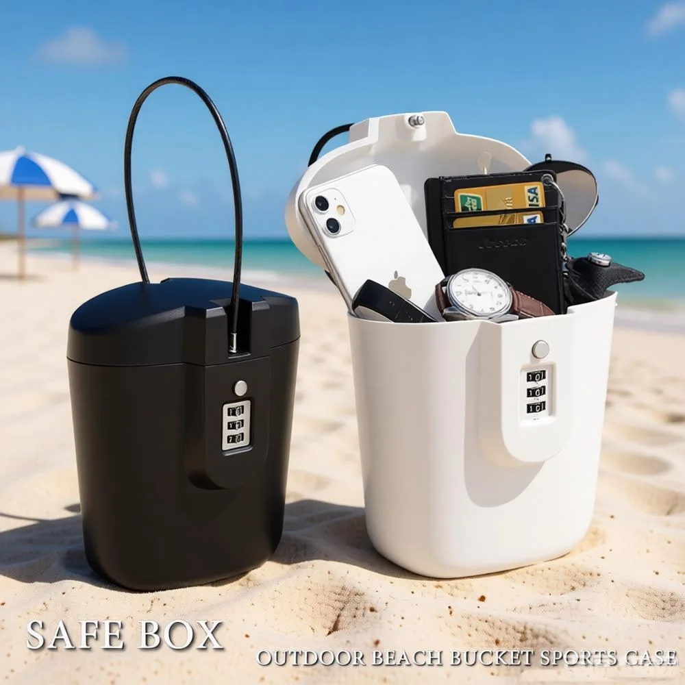 Przenośny Letni Skrytka Plażowa z Zamkiem Szyfrowym 3-cyfrowym i Stalowym Linką, Skrzynka Zabezpieczająca do Przechowywania na Kempingu, Sportu, na Plaży, do Wiadra Plażowego