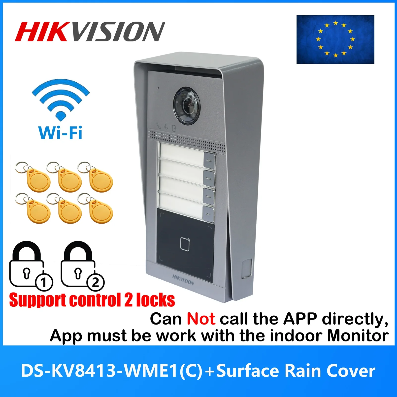 4-przewodowy dzwonek do drzwi XC113F-2 HD z kamerą zewnętrzną IP65 + 5 szt. breloków IC 13,56 MHz do wideodomofonu, interkomu, systemu bezpieczeństwa dla 2 rodziny