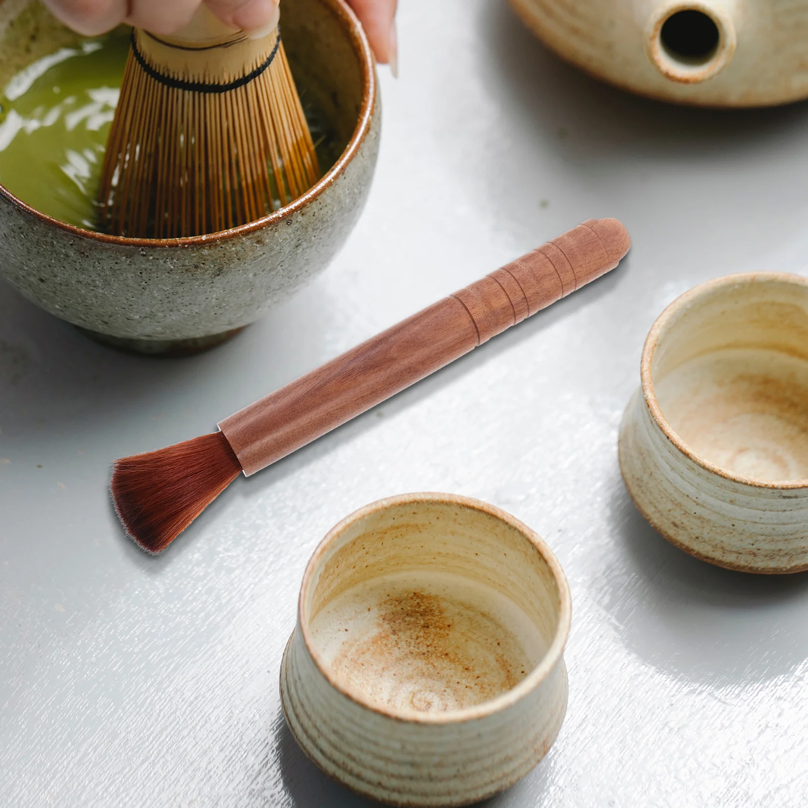 Szczotka do herbaty, mała, wielokrotnego użytku, do czyszczenia naczyń do herbaty, naturalne włosie, drewniana rączka, do herbaciarni, kuchni, do szalek, garnków, narzędzie do szorowania.