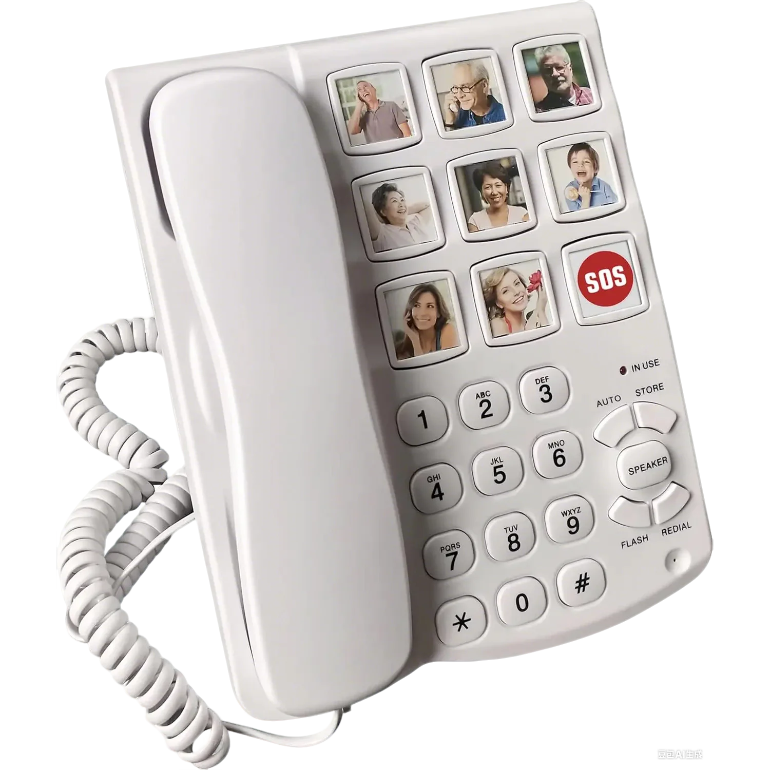 Telefon przewodowy z dużymi przyciskami, telefon z dużymi przyciskami, duża regulacja głośności, powtarzanie ostatniego numeru, telefon stacjonarny przewodowy.
