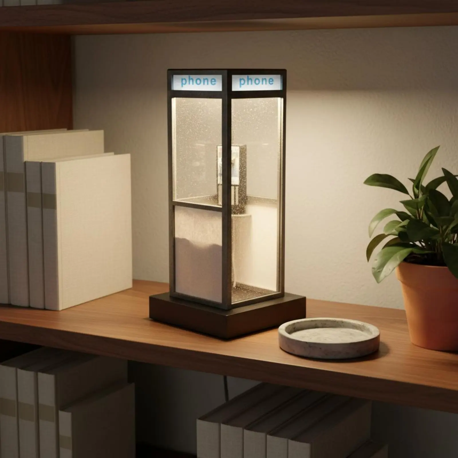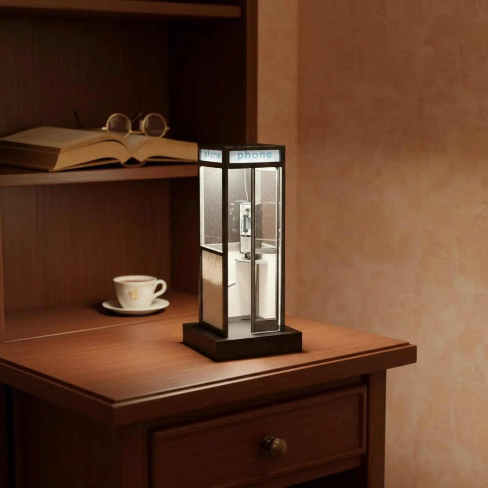 Model telefonu vintage, staromodny telefon ścienny, ozdobna figurka telefonu z żywicy, telefon w kształcie budki telefonicznej, rekwizyty fotograficzne.