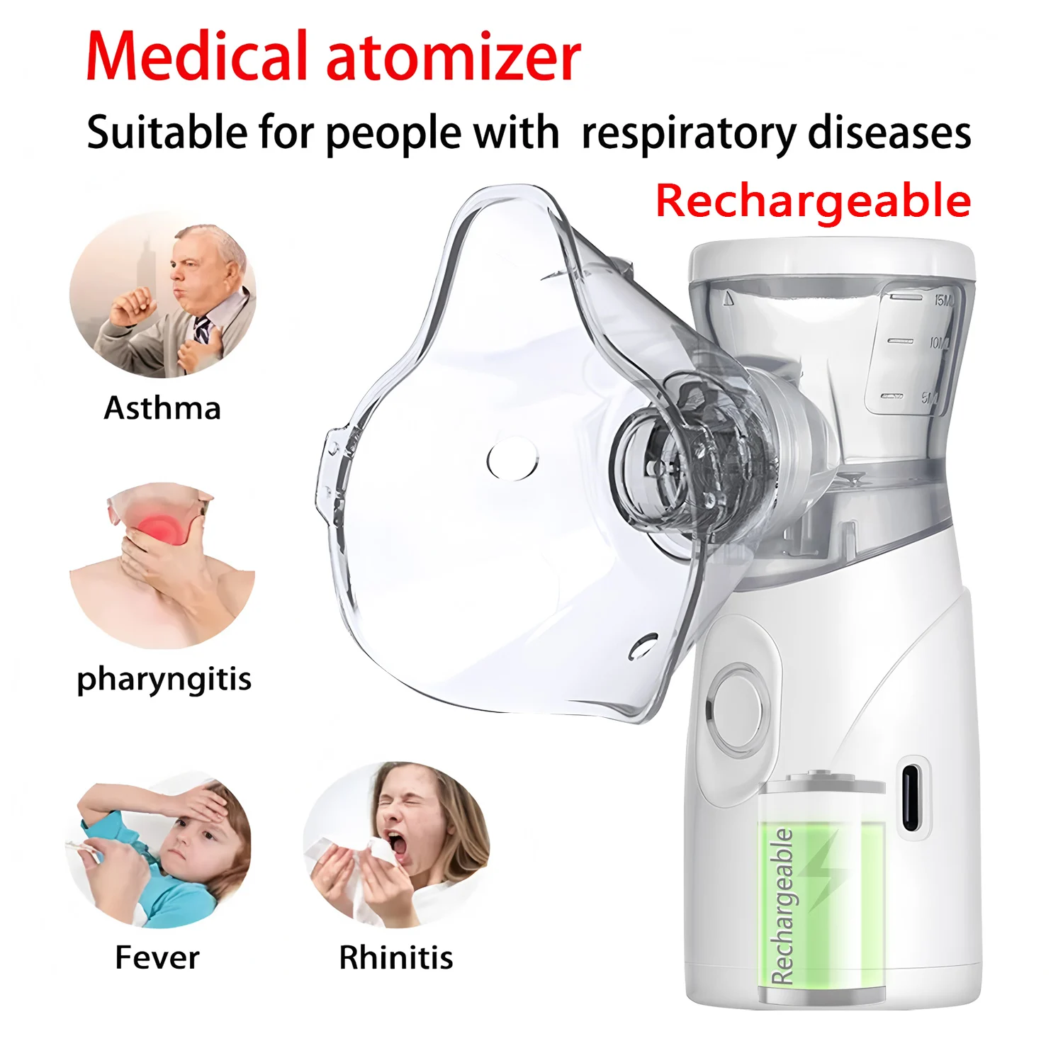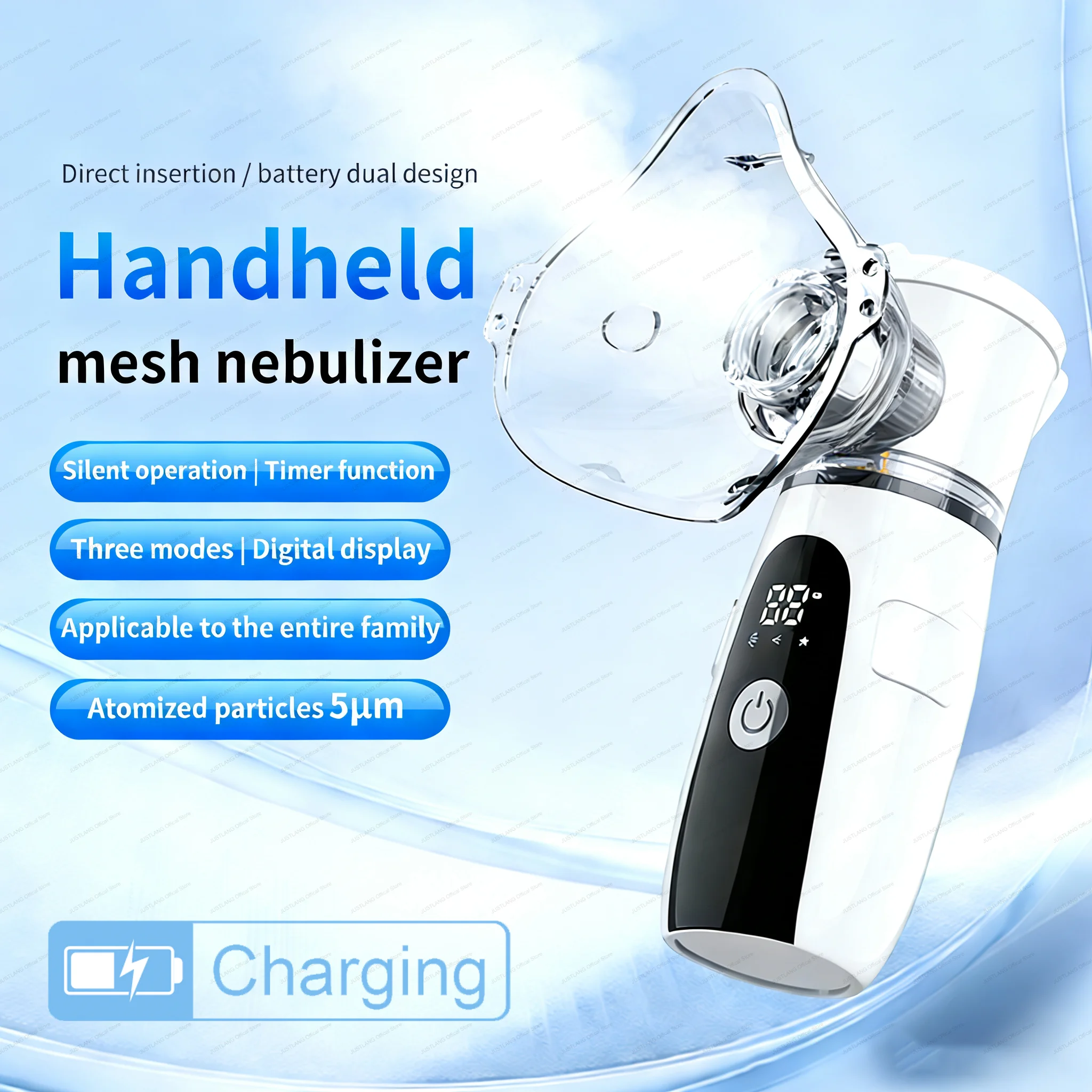 Ręczny nebulizator z cyfrowym wyświetlaczem, inhalator na astmat, cichy atomizer siatkowy, mini przenośny nebulizator nawilżający dla dorosłych i dzieci.