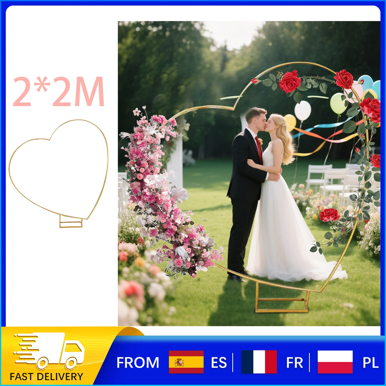 Stojak metalowy na łuk ślubny 2x2m/6x6.6Ft, metalowa kwadratowa rama do tła ogrodowego, łuk na balony na imprezę, stojak do dekoracji kwiatowych i balonowych DIY