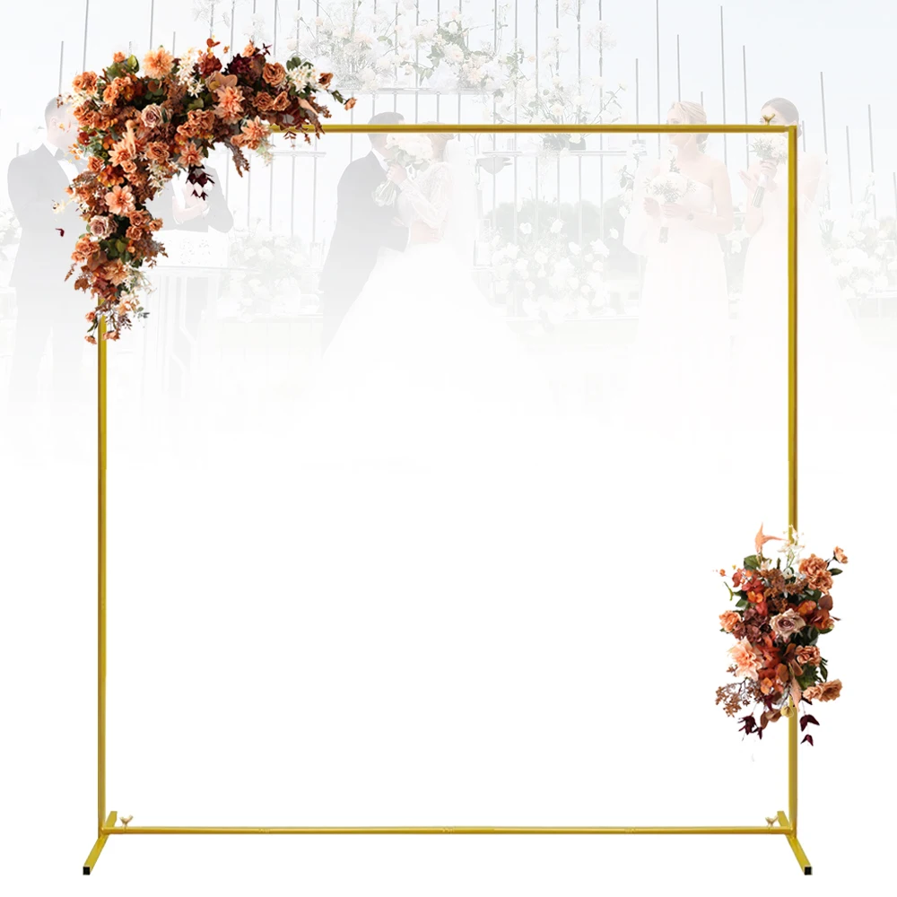 Wytrzymały kwadratowy stojak na łuk ślubny 2x2m, odłączana metalowa rama tła do dekoracji balonami, kwiatami, na ceremonie na świeżym powietrzu i imprezy.