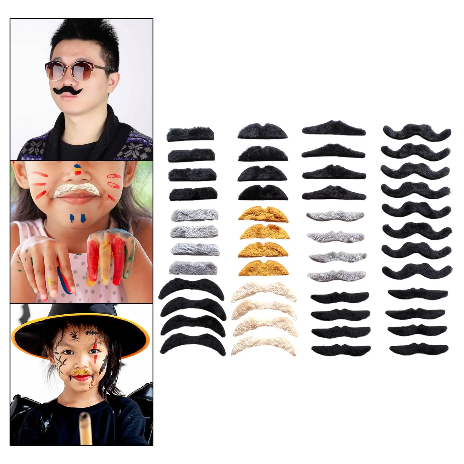 48 szt. Sztucznych Wąsów Symulacja Brod Zabawne Sztuczne Brody na Halloween Imprezy Przebrania Rekwizyty Fotograficzne Maskarada