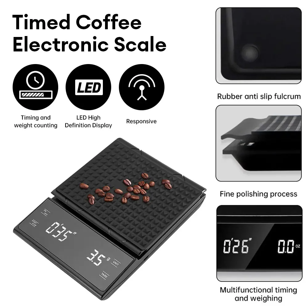 Profesjonalna elektroniczna waga do kawy Inteligentna waga kuchenna z funkcją pomiaru czasu Cyfrowa precyzja do ręcznie robionego kawy Idealna dla baristów