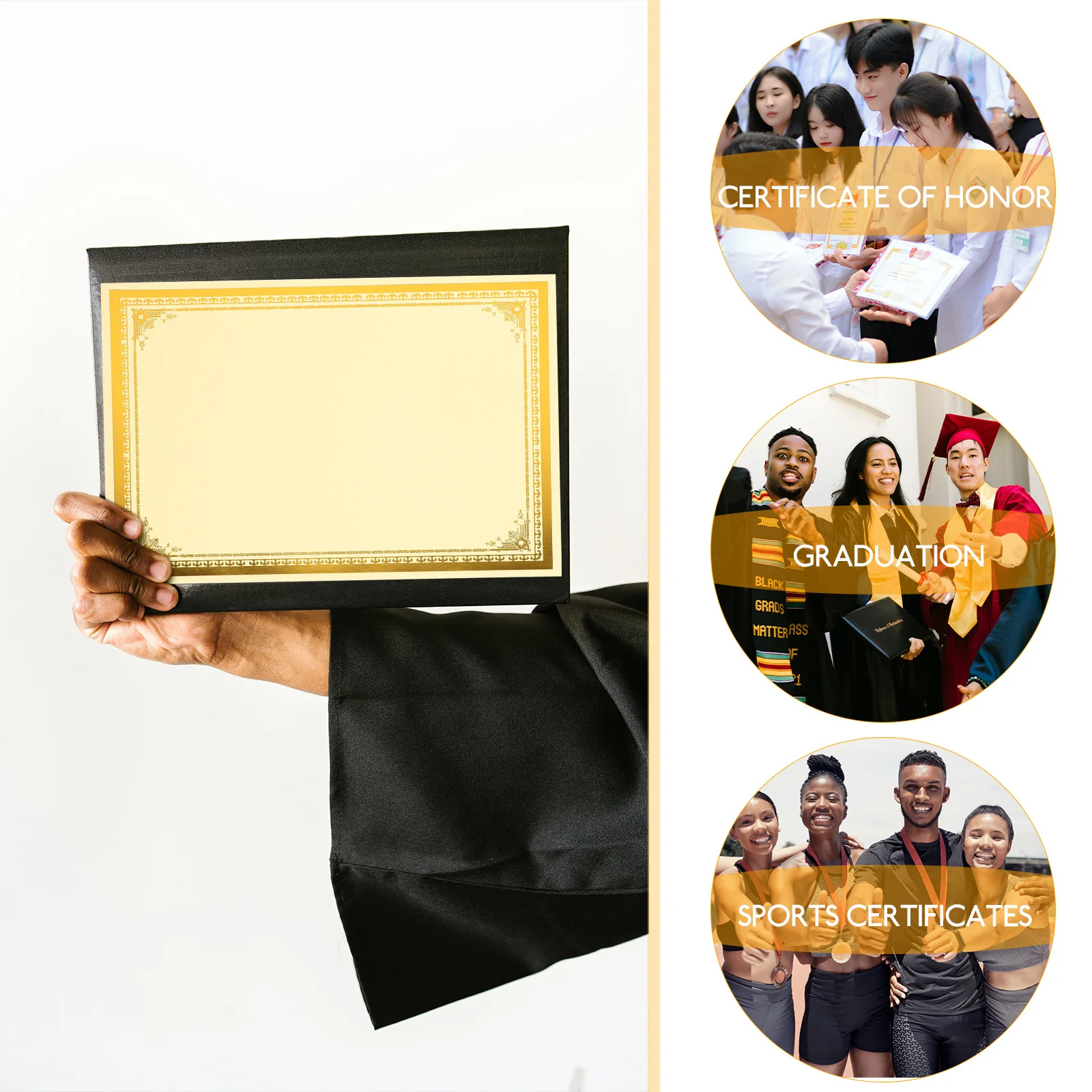 8 arkuszy pozłacanego papieru na certyfikaty A4, czysty papier na dyplomy, wysokiej jakości arkusze na nagrody za osiągnięcia akademickie, nagrody szkolne