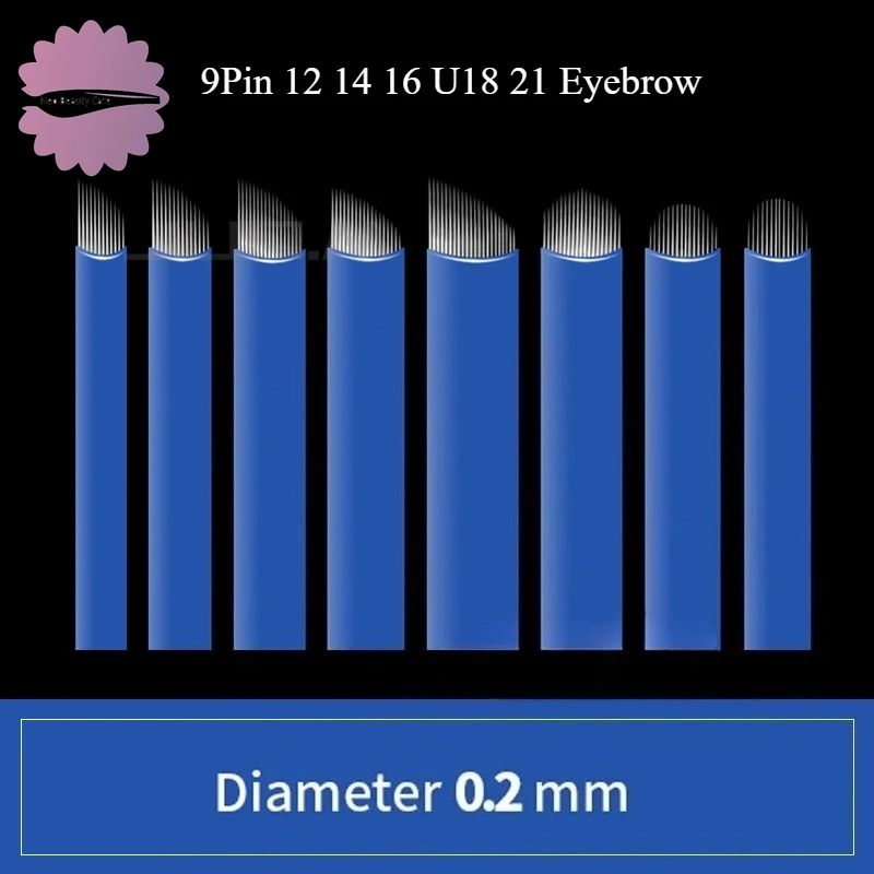 10/50/100 szt. Igieł do microbladingu 0.2mm Igiełki do tatuażu PMU Ostrza do makijażu permanentnego 9Pin 12 14 16 U18 21 Ostrza do ręcznych pisaków do brwi