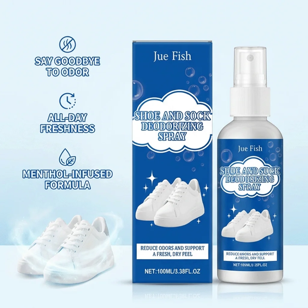 Spray dezodorujący do butów, neutralizator zapachu sneakersów, odświeżacz do skarpet i stóp, zapach mentolu, odświeżający spray do butów sportowych, przeciwzapachowy, przenośny, 100 ml