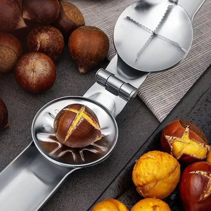 Nożyczki do kasztanów ze stali nierdzewnej, dziadek do orzechów, otwieracz do orzechów, ergonomiczne uchwyty, krzyżowe ząbkowanie, kuchenny dziadek do orzechów