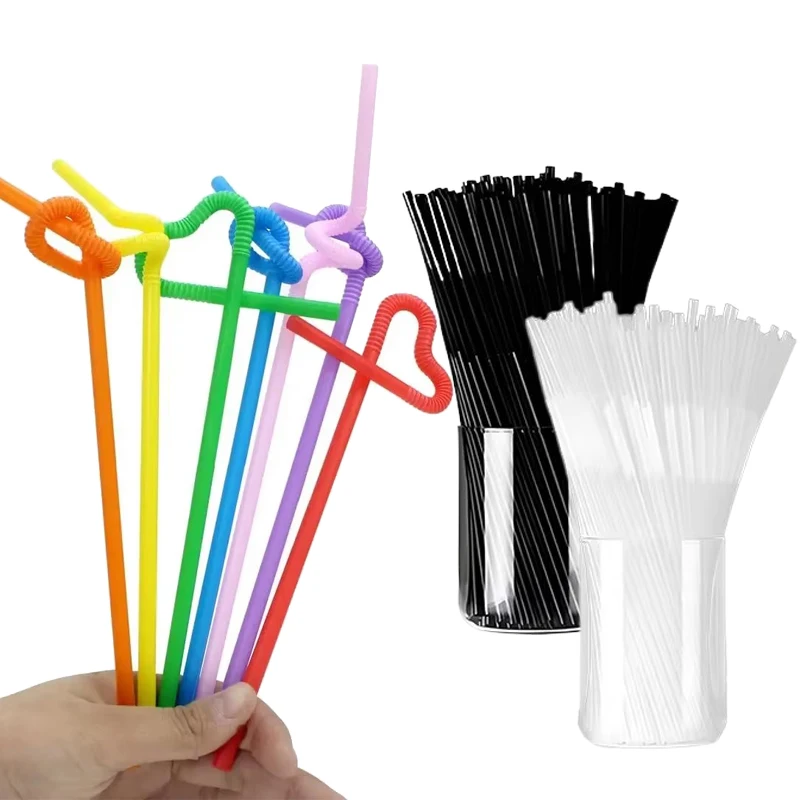 100 szt. Kolorowych, giętkich słomek do picia, plastikowe słomki do herbaty mlecznej, na imprezy, bar, rietjes, do picia, na wesele, do kuchni, słomki do napojów