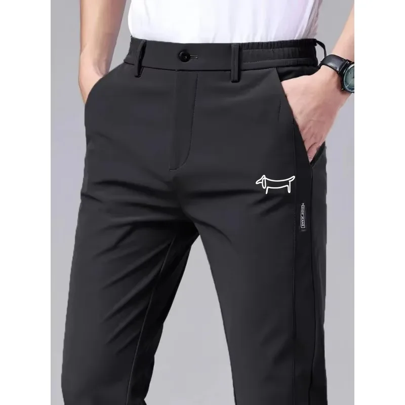 2026 2 sztuki Męskie spodnie casualowe z jedwabiu lodowego, elastyczne, dopasowane, z elastyczną talią, joggersy, koreańskie klasyczne męskie markowe spodnie długie z nadrukiem