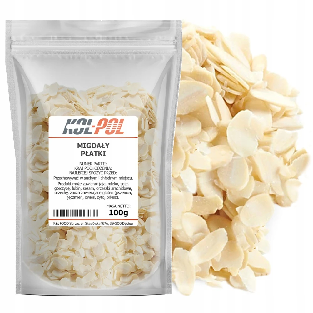 PŁATKI MIGDAŁOWE 100g Migdały cięte naturalne w płatkach jakość Kol-Pol