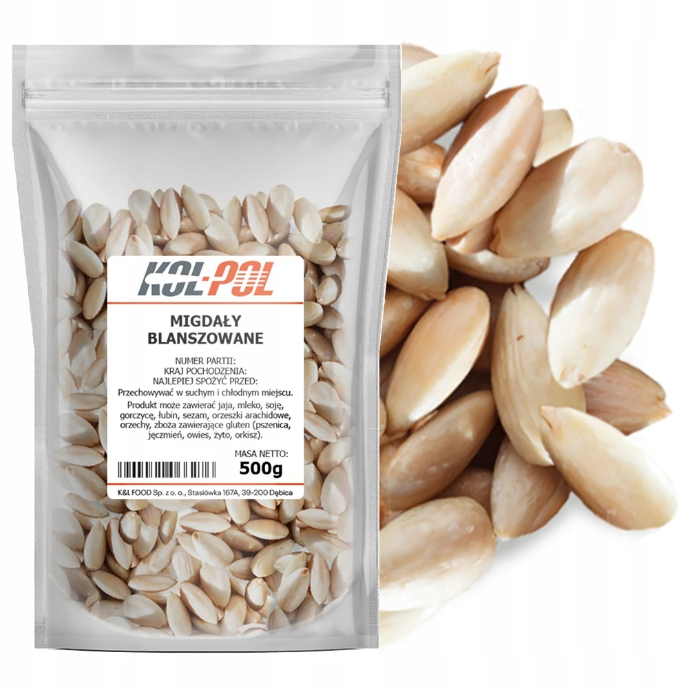 MIGDAŁY BLANSZOWANE 500g Bez skórki naturalne łuskane świeże jakość Kol-Pol