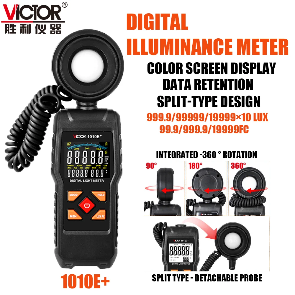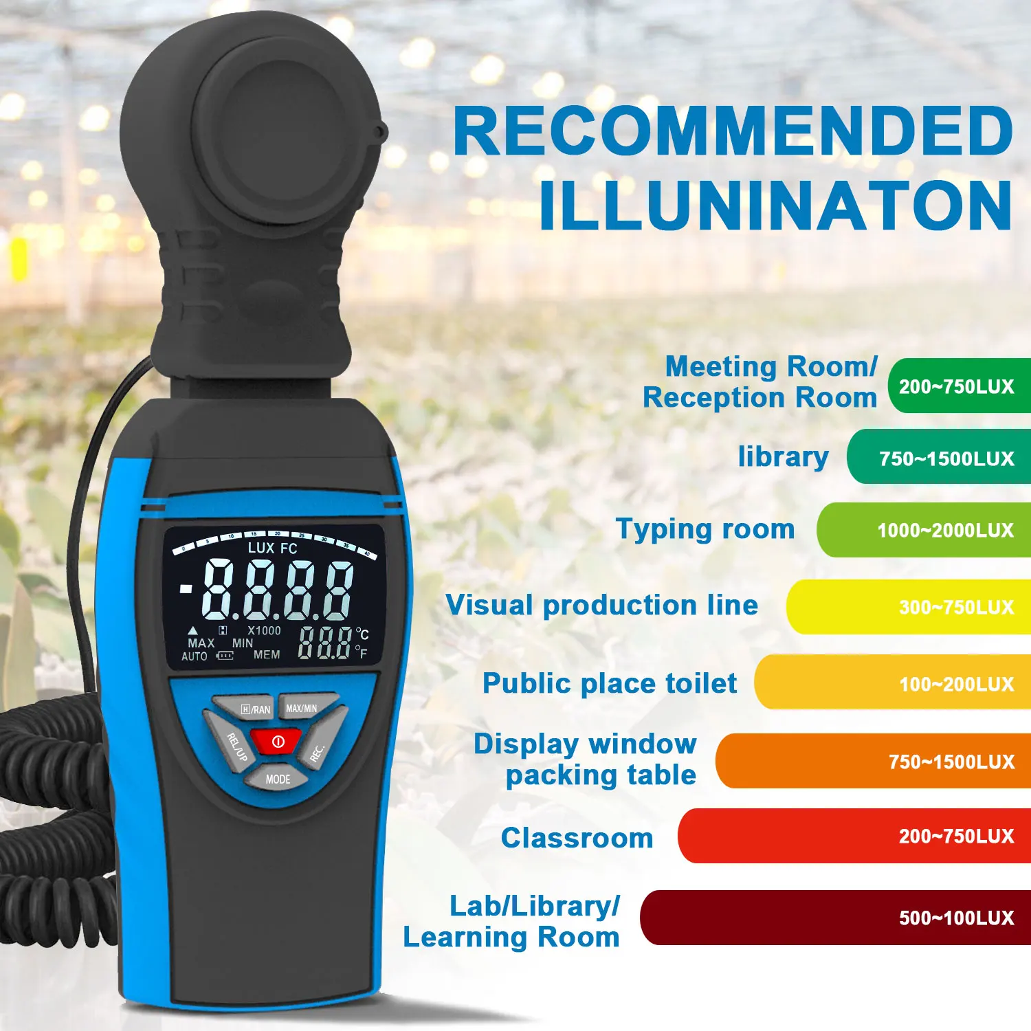 Iluminometr, cyfrowy miernik natężenia oświetlenia (lux) typu foot candlestick, zakres 0,1~400000 lux, z możliwością obrotu o 270°, miernik natężenia oświetlenia do użytku wewnątrz i na zewnątrz.