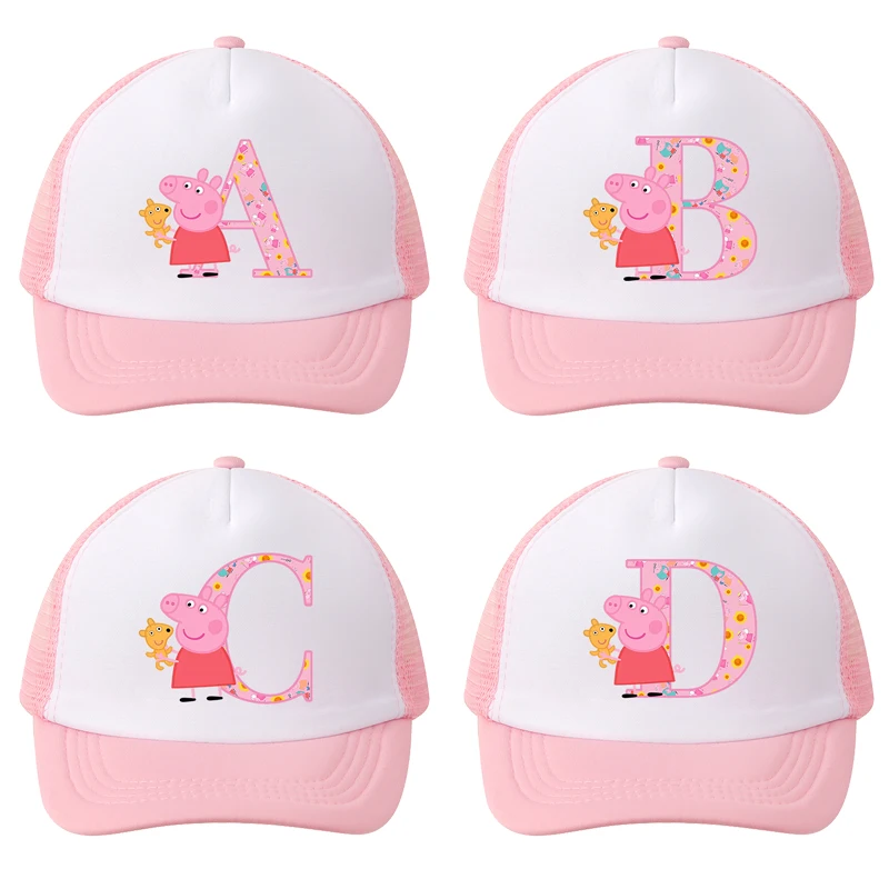 Czapki baseballowe dla dzieci i dorosłych, czapki przeciwsłoneczne z nadrukiem Peppa Pig, literami A-Z, czapki z daszkiem z kreskówkami, regulowane czapki dla dziewczynek, letnie czapki codzienne.