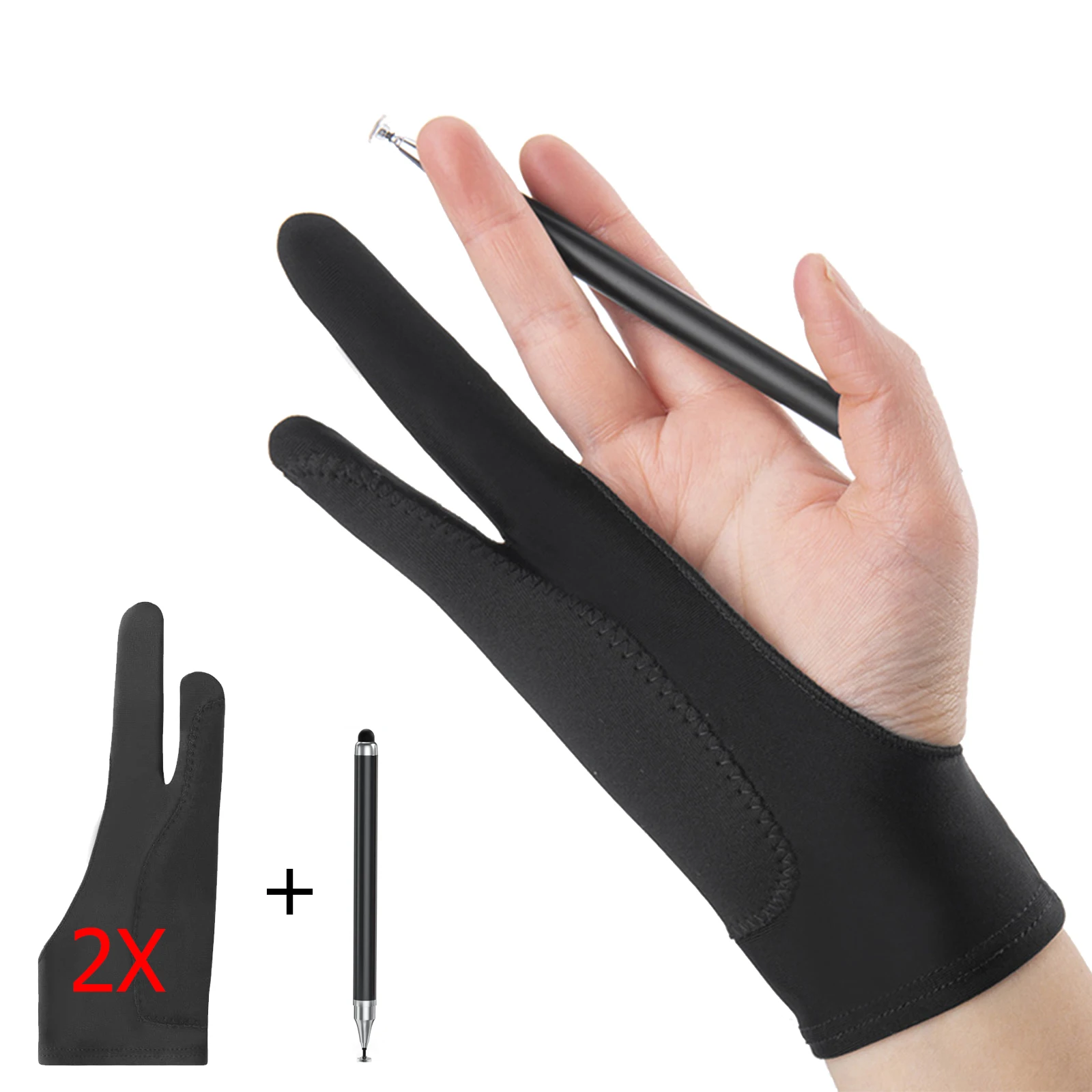 Rękawica do rysowania na tablet, 2 sztuki, dla praworęcznych, dwupalcowa, dla artystów, zapewniająca płynne rysowanie na tabletach o lekkiej konstrukcji.