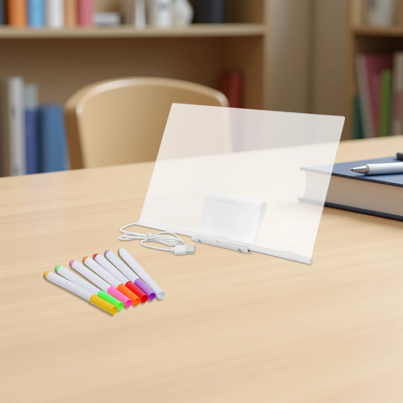 Podświetlana diodami LED magiczna tablica do notatek na biurko tablica do notatek kasowalna biała tablica dla dzieci DIY malowanie z 7-kolorowymi długopisami