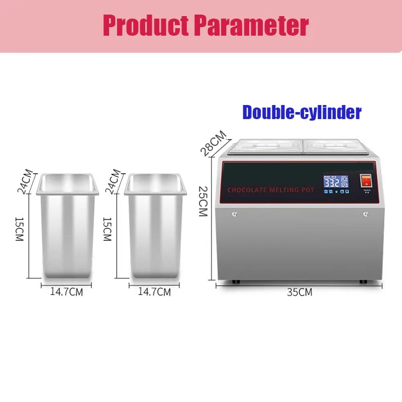 Profesjonalna maszyna do topienia czekolady, komercyjny piec do topienia czekolady, elektryczna maszyna do topienia czekolady z podwójnym cylindrem do pieczenia.