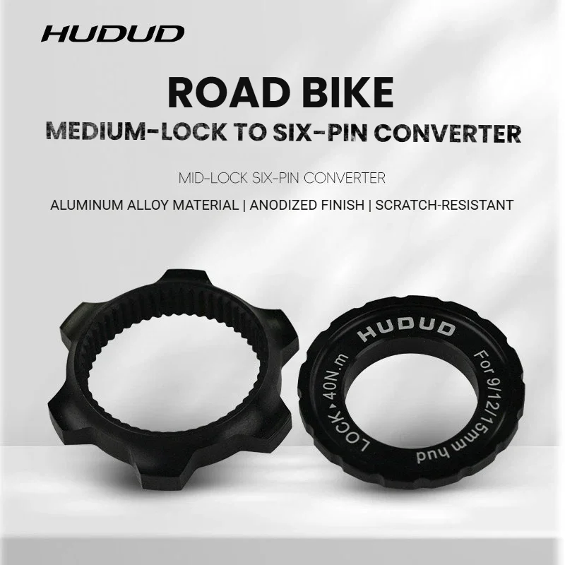 Adapter z blokadą centralną HUDUD na 6 śrub | 26g Stop aluminium | Kompatybilny z osią 9/12/15mm | Anodowane na czarno