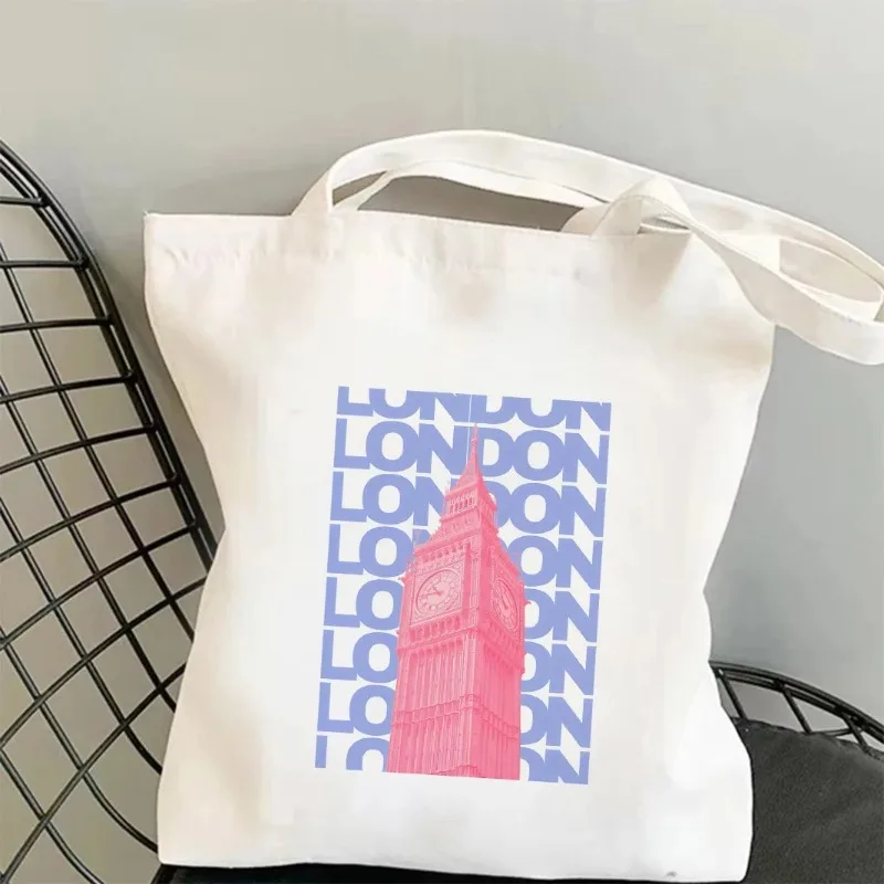 Torba płócienna z grafiką Chicago, Londynu i Wieży Eiffla, torba na ramię z motywem miast i zabytków świata, damska torba podróżna, na zakupy, na zewnątrz.