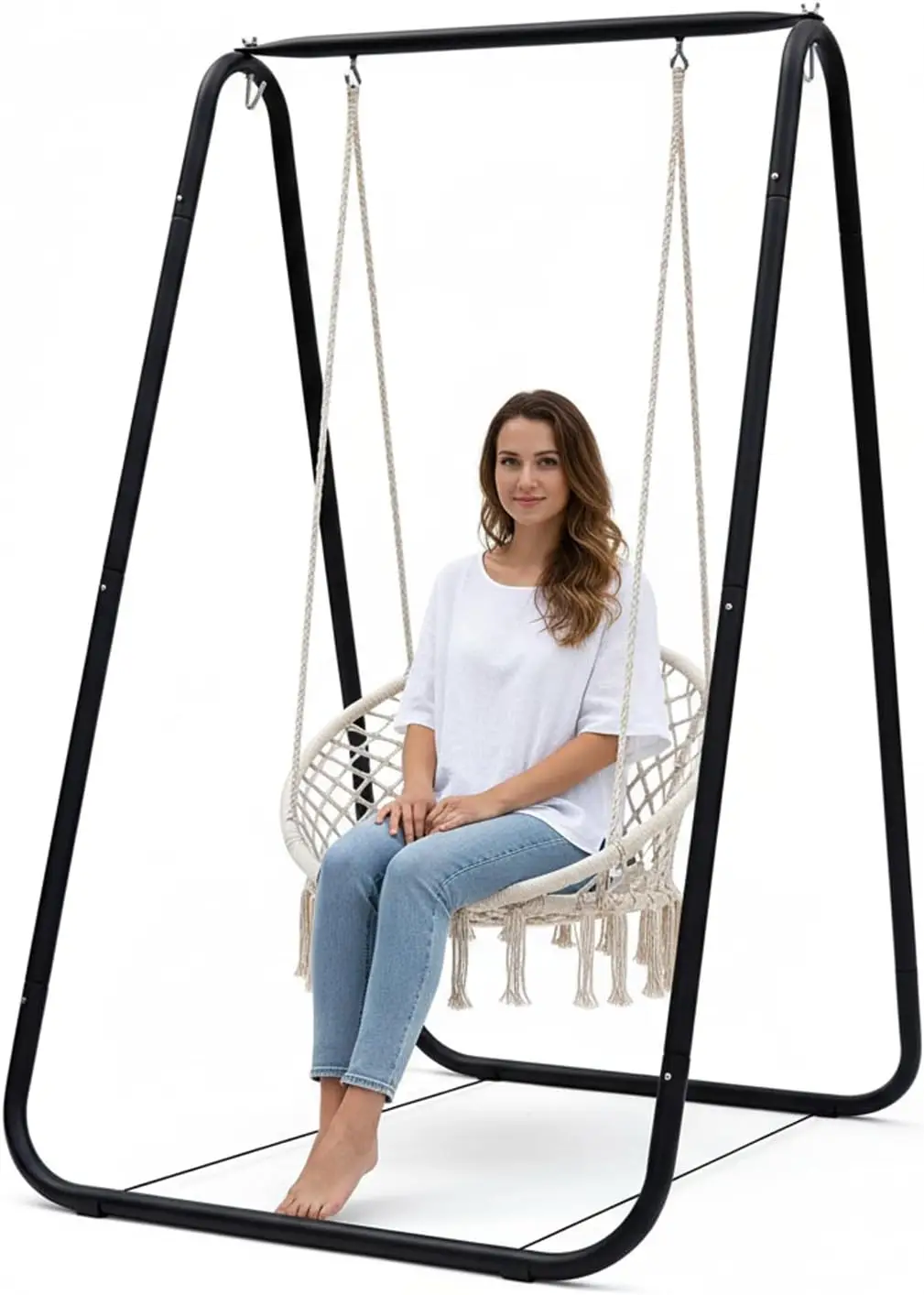 Rama do wiszącego fotela do użytku wewnątrz i na zewnątrz, rama do wiszącego fotela montowana na podłodze, rama do wiszącego fotela na balkony, do ogrodów, na dziedzińce