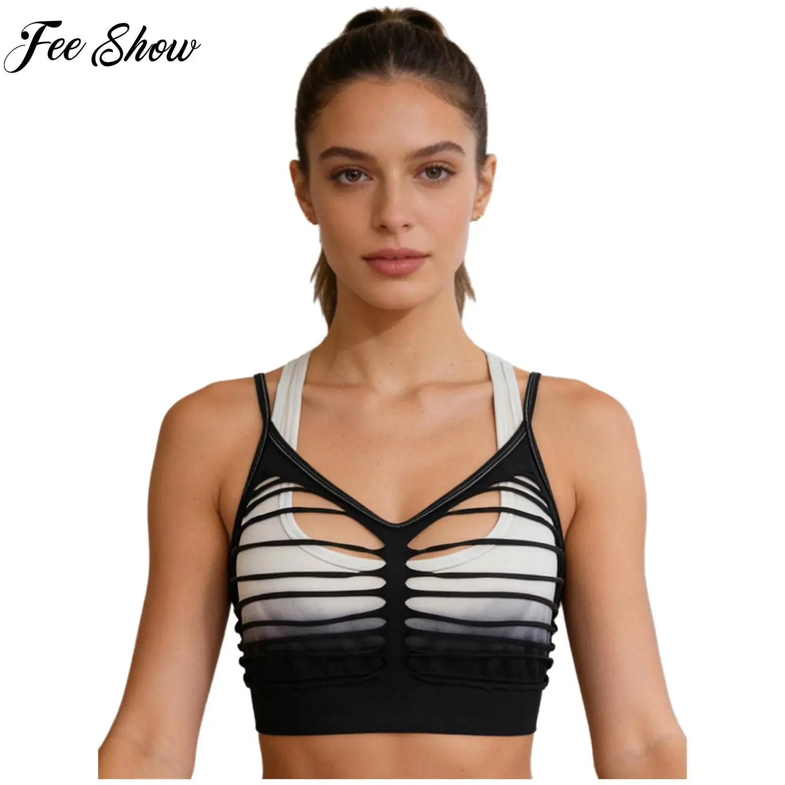 Damski sportowy biustonosz z elastycznym, krzyżującym się na plecach wiązaniem, oddychający, komfortowy, o wysokiej wytrzymałości, idealny do jogi, biegania, fitnessu, jazdy na rowerze.