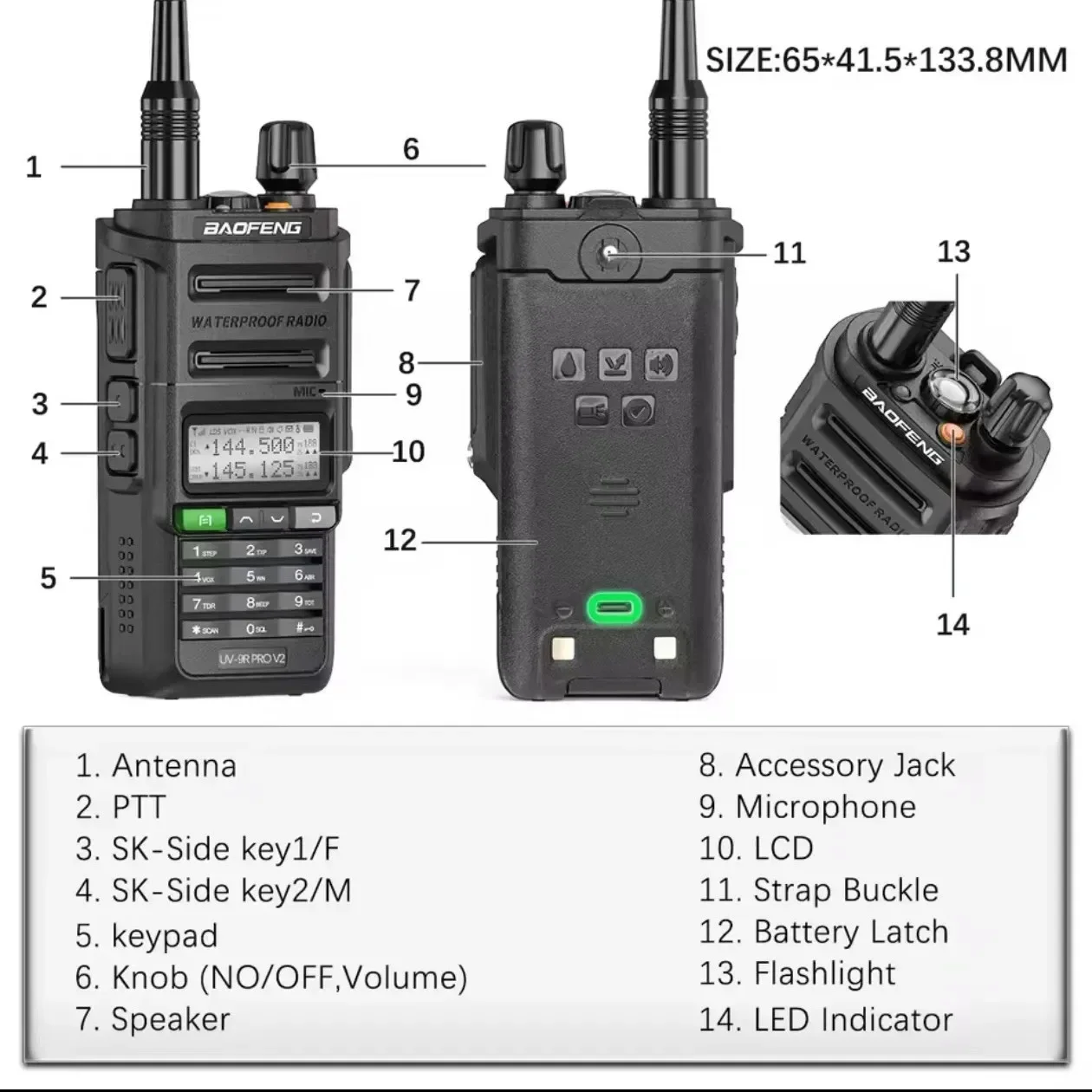 Wytrzymały, wodoodporny radiotelefon BAOFENG UV-9R PRO z portem TYPE-C do użytku na łodziach i w celach cywilnych, o dużej mocy, dwupasmowy, do użytku na zewnątrz.