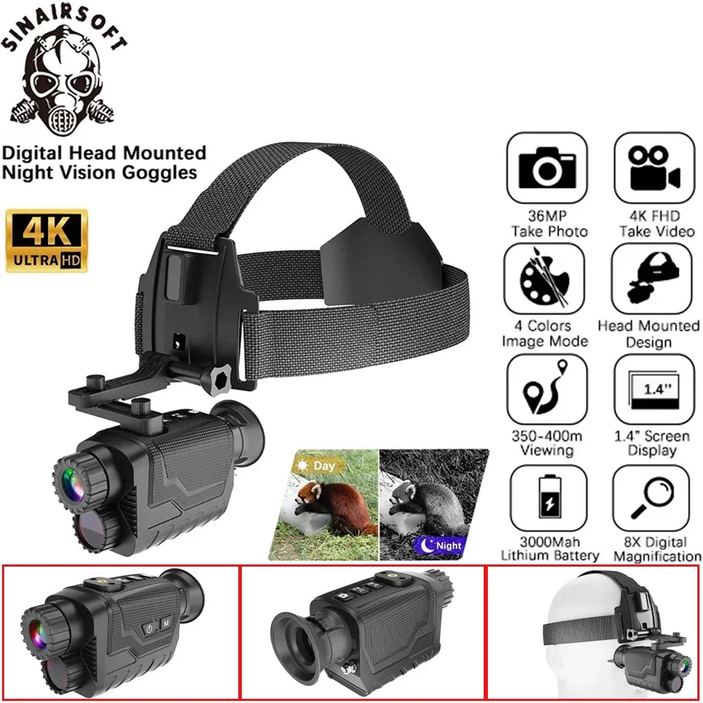 Monokular noktowizyjny NV8260 4K HD z mocowaniem na głowę, kamera noktowizyjna z 8-krotnym powiększeniem cyfrowym, teleskop noktowizyjny na podczerwień do użytku zewnętrznego.