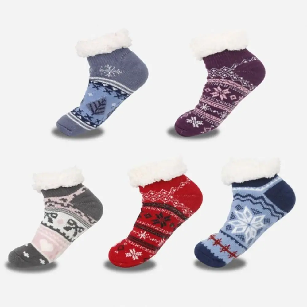 5 Par Damskich Krótkich Skarpetek Jesienno-Zimowych z Grubym Aksamitem, Ciepłe Skarpetki typu Baleriny z Haftem Kokardki, Puszyste Skarpetki Domowe do Spania, Wygodne Skarpetki Podłogowe