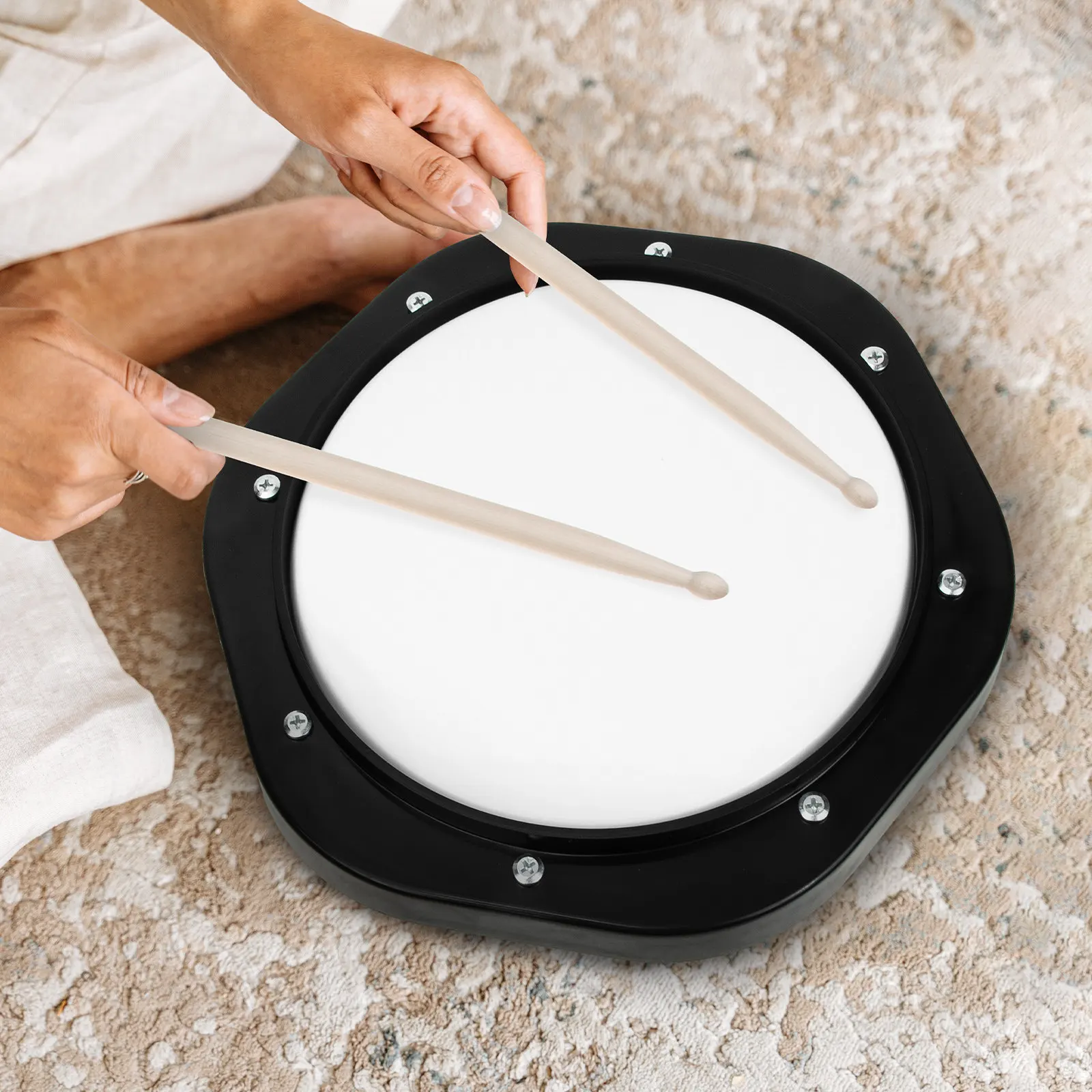 12-calowy realistyczny pad perkusyjny do ćwiczeń, poprawiający technikę, zestaw perkusyjny dla początkujących, skóra perkusyjna z efektem piaskowania, wytrzymały statyw do treningu instrumentów perkusyjnych.