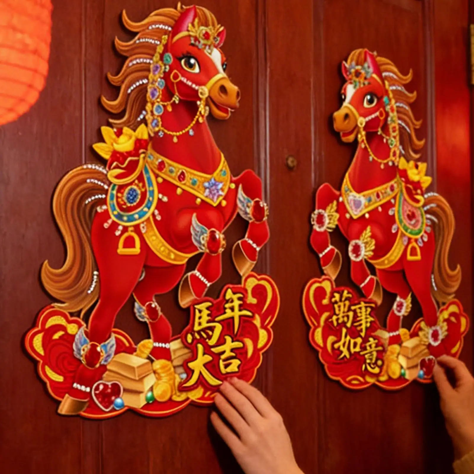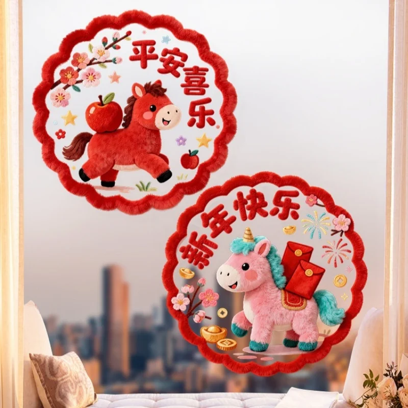 {YY28} 5 szt. Naklejki statyczne na okno z motywem Konia na Rok 2026, kreatywne naklejki na szybę z konikiem przynoszącym szczęście, dekoracje noworoczne do domu