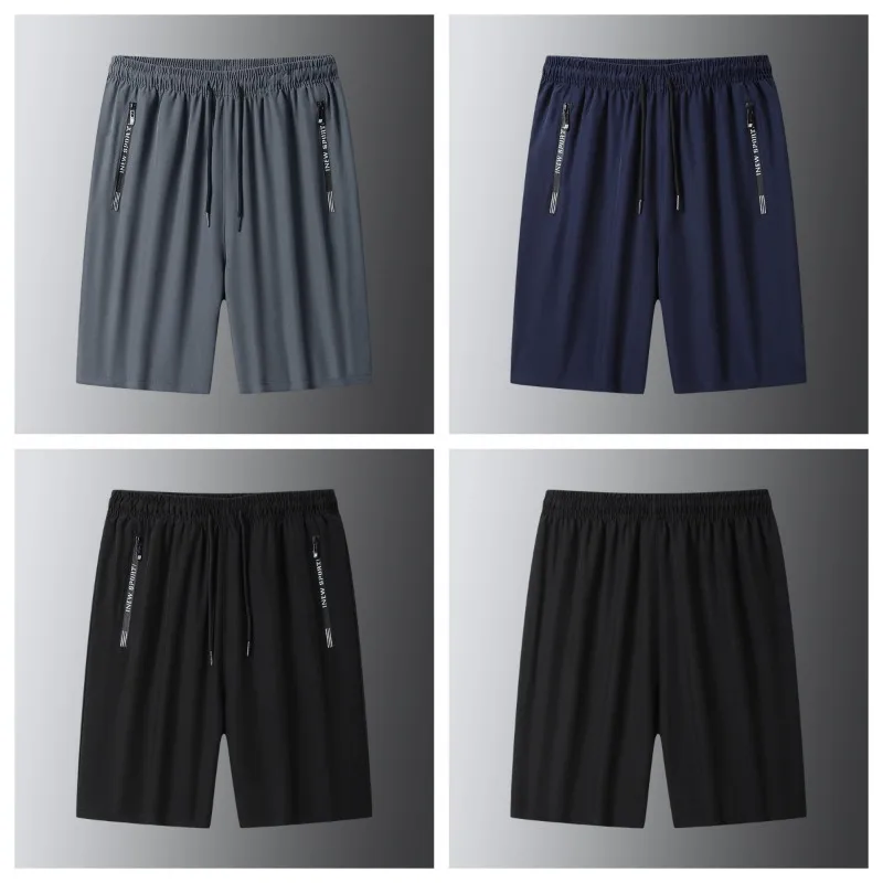 Letnie trendy w modzie: szybkoschnące szorty z jedwabiu lodowego, idealne do sportów outdoorowych i rekreacji, luźne, oddychające, uniwersalne szorty męskie.