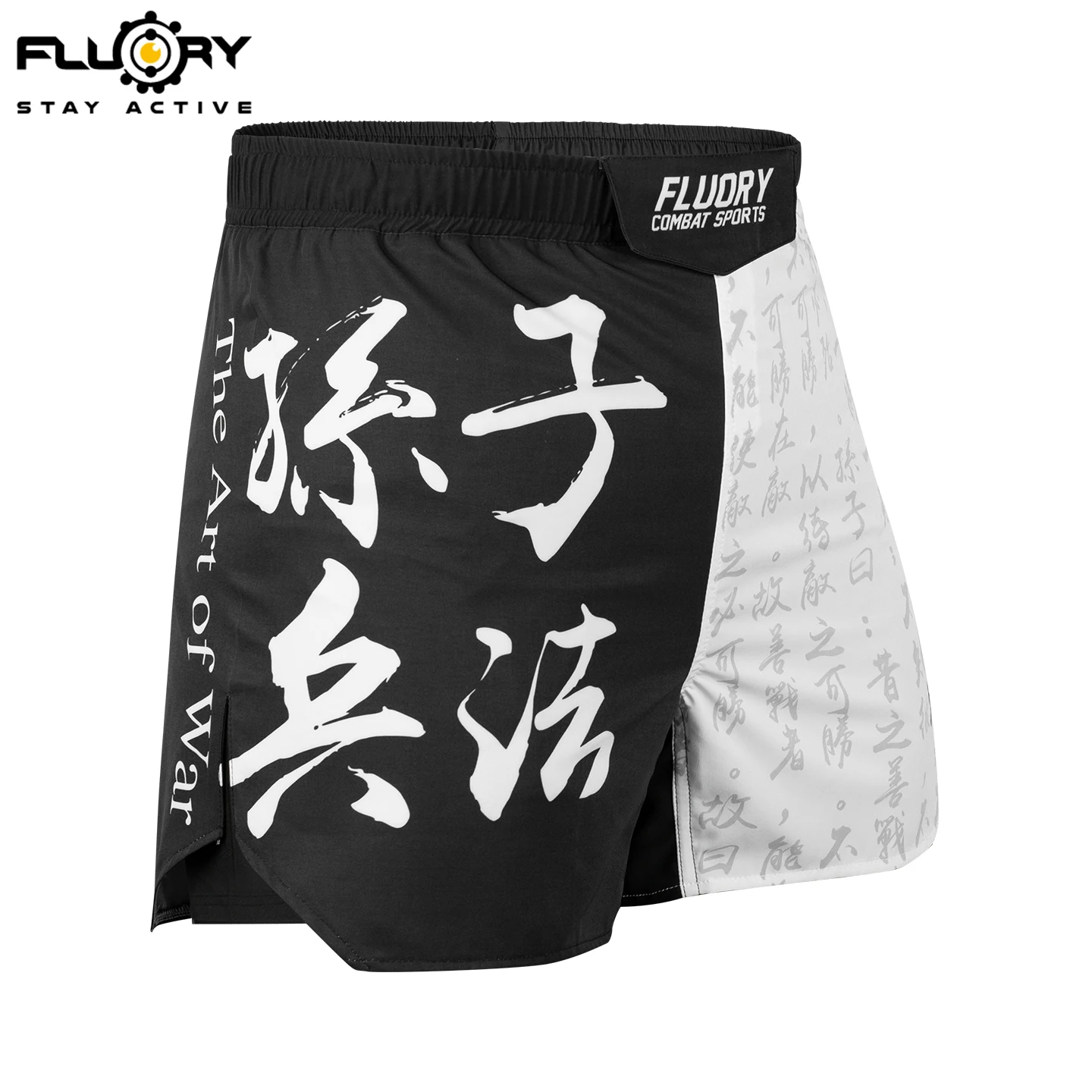 Spodnie bokserskie męskie FLUORY MMA Jujitsu Fight, szorty kickboxingowe MMA, szorty Sun Tzu's Art of War, spodnie do ćwiczeń na siłowni, sanda, szorty bokserskie Muay Thai