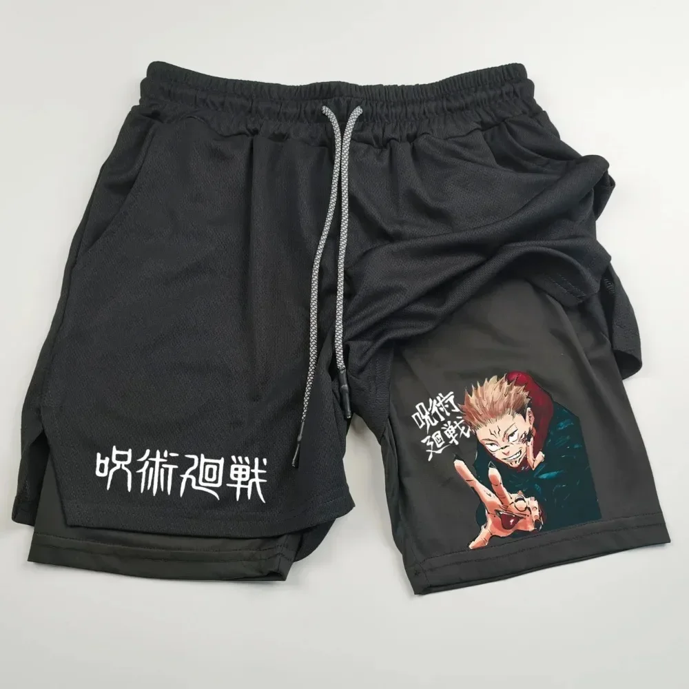 Szorty do biegania 2 w 1 z nadrukiem miecza dla mężczyzn Sportowe szybkoschnące szorty z kieszenią na telefon Letnie szorty gimnastyczne Odzież sportowa