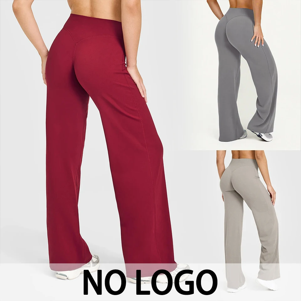 Damskie spodnie sportowe z prostymi nogawkami, odzież na siłownię, efekt nagiej skóry, kompresyjne legginsy z szerokimi nogawkami do jogi, pilatesu i fitnessu.