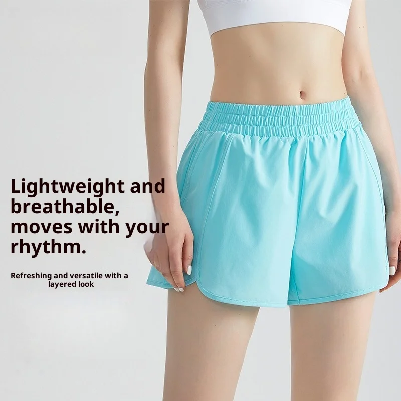 Dwuwarstwowe spodenki sportowe damskie, odzież wierzchnia z kieszeniami, luźne i szybkoschnące, zapobiegające prześwitywaniu, spodenki do biegania i fitnessu na lato.