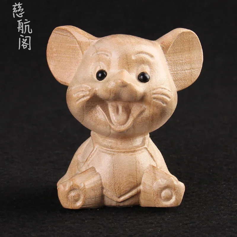 Dekoracja mysz z mahoniu, rzeźbiona w drewnie, z litego drewna, drewniana ozdoba na kierownicę samochodu z motywem dwunastu znaków zodiaku, mysz, maskotka.