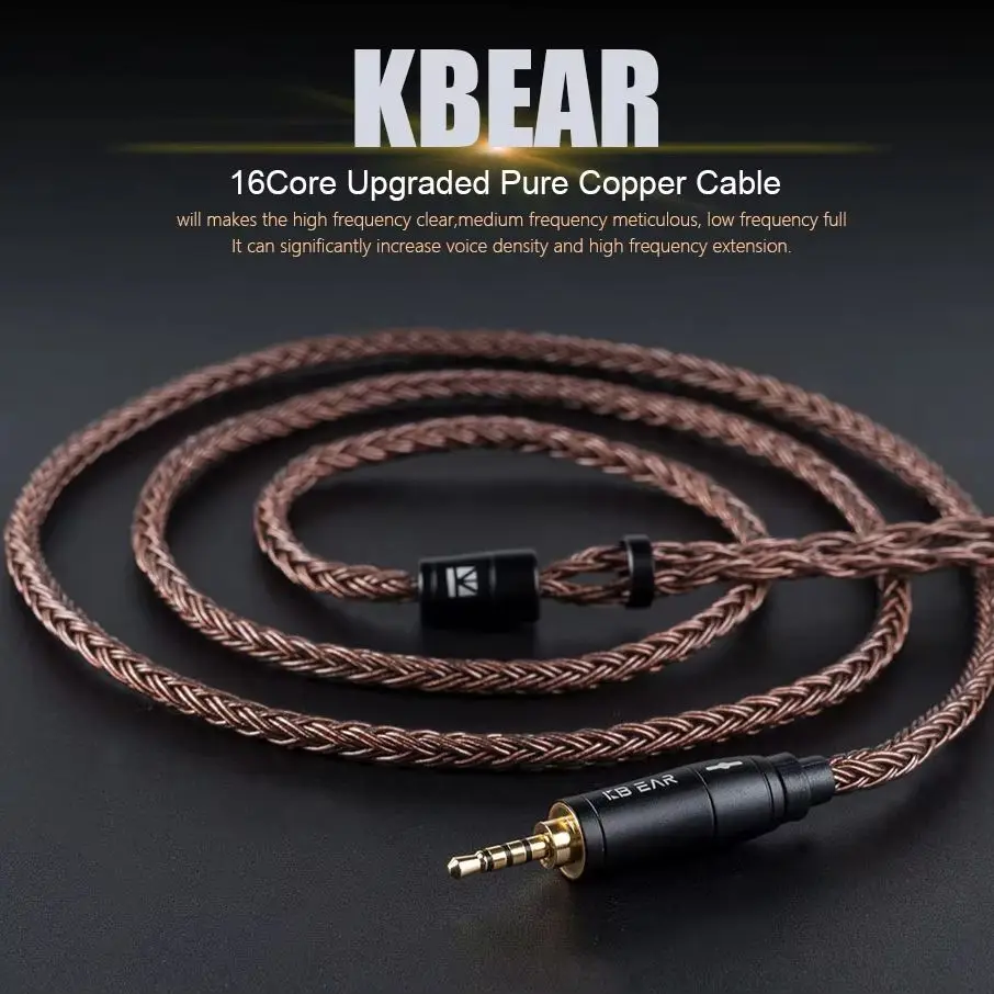 KBEAR 16-rdzeniowy 2-pinowy kabel słuchawkowy IEM, ulepszony HiFi w dousznym wyświetlaczu zamiennik TRS przedłużacz z czystej miedzi