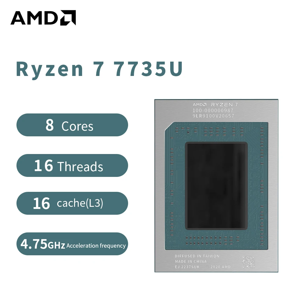 Procesor AMD R7 7735U do laptopa Ryzen 7 7735U 4,75 GHz 8-rdzeniowy 16-wątkowy 4 MB pamięci podręcznej do gier 6NM 28 W FP7 Procesor do gier 100-000000987