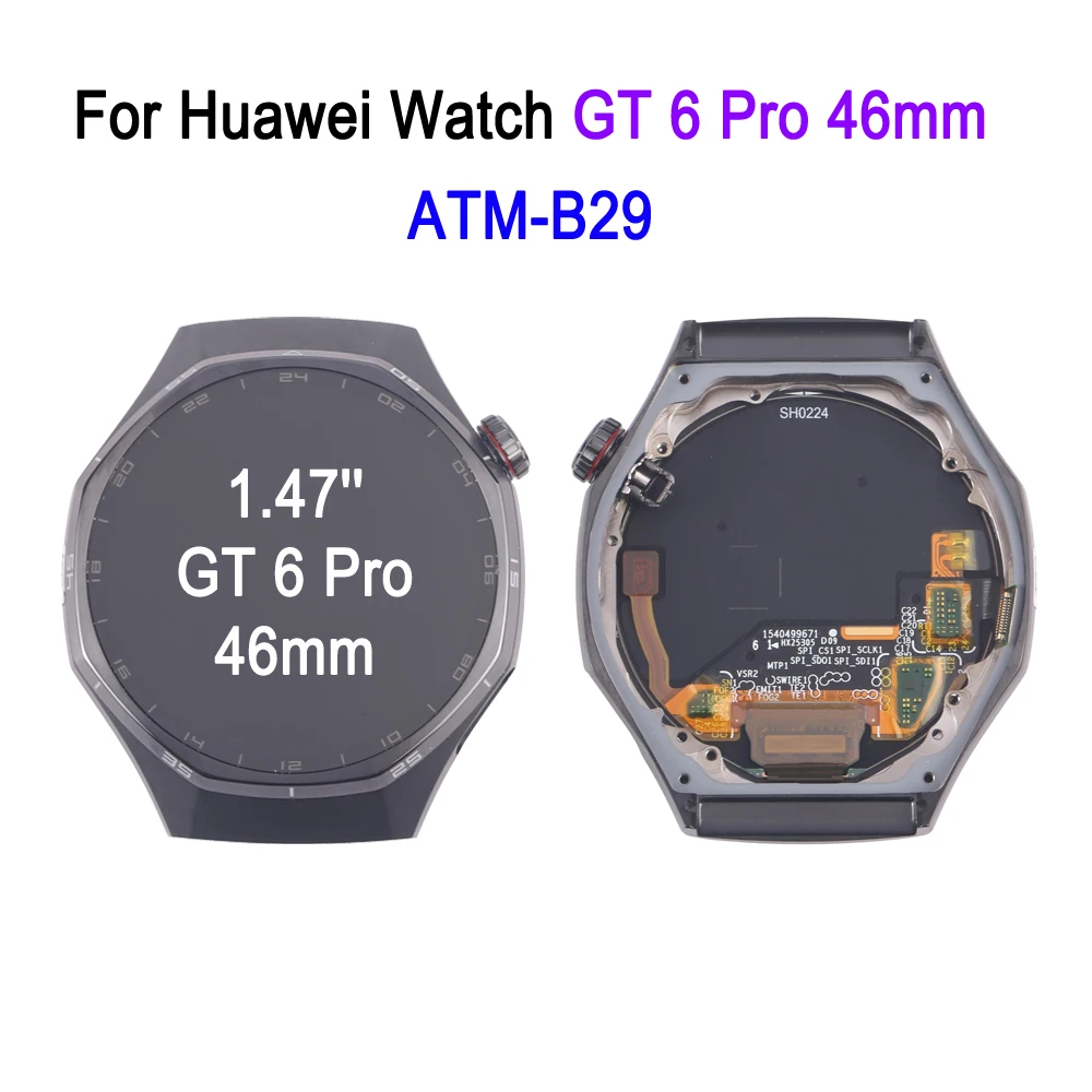 Oryginalny ekran AMOLED 1,47 cala z ramką do Huawei GT 6 Pro 46mm ATM-B29, ekran dotykowy zamienny do zegarka, model ATM-B29