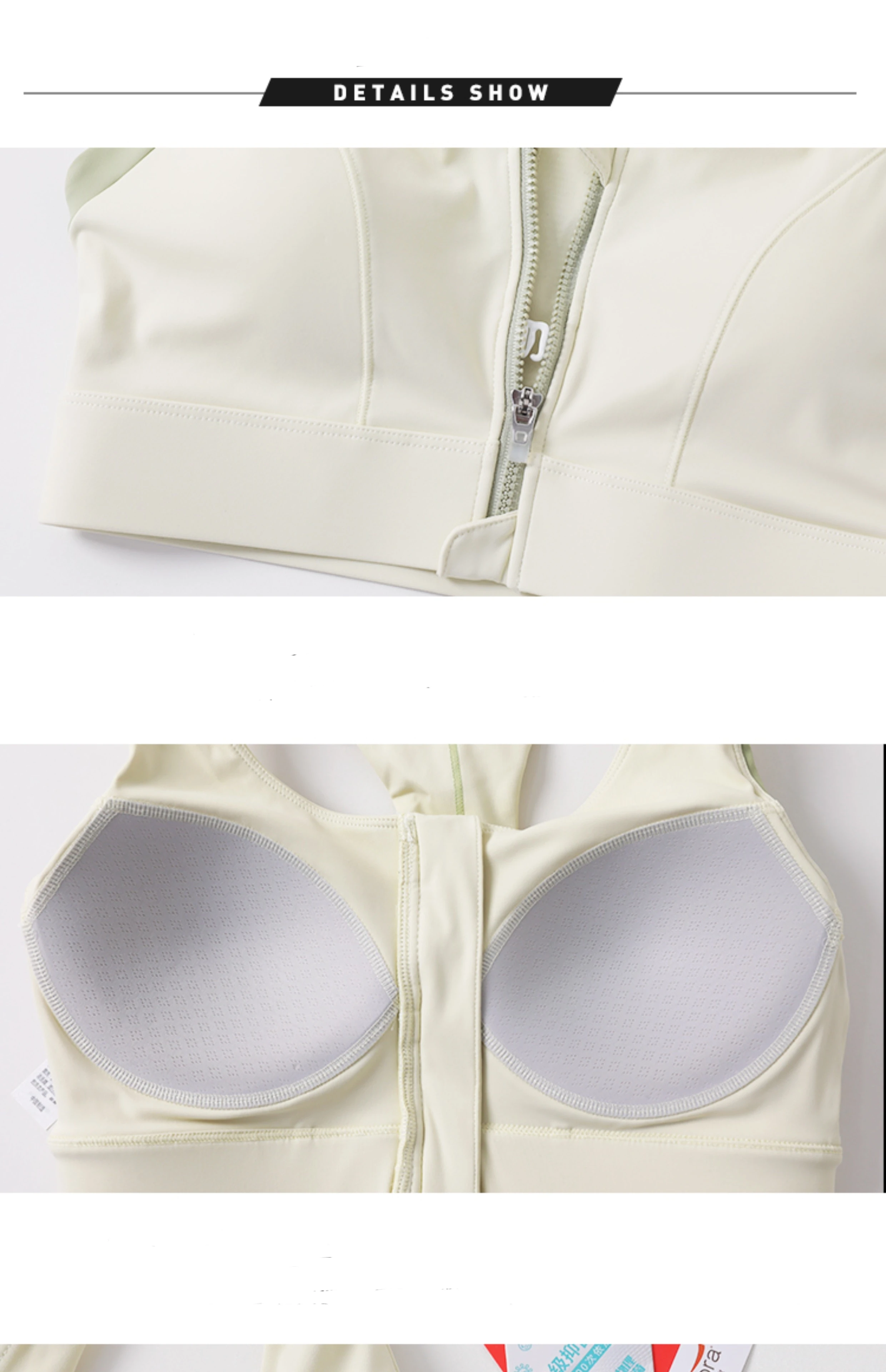 Damski, mocno podtrzymujący biustonosz sportowy odporny na wstrząsy, z zamkiem błyskawicznym z przodu, w stylu kamizelki, idealny na letnie treningi jogi.