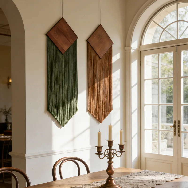 Ręcznie Tkana Dekoracja Domu Gościnnego w Stylu Nordyckim, Gobelin z Frędzlami, Sztuka do Powieszenia, Bohemski Wystrój Salonu, Tekstylna Dekoracja Ścienna, Ręcznie Robiona Bawełniana Dekoracja Ścienna