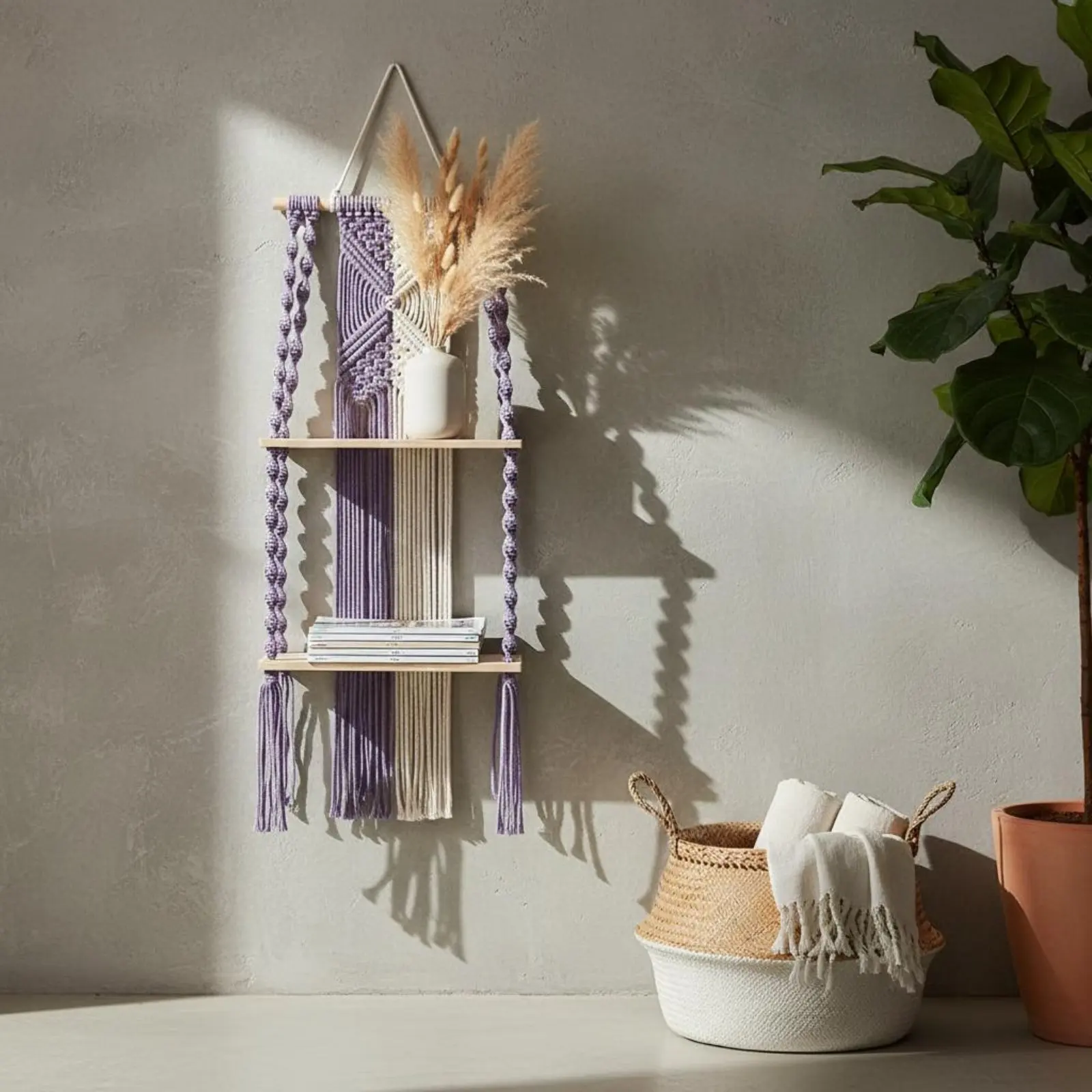 Półka ścienna w stylu boho, ręcznie robiona półka makrama, bohemski regał do przechowywania, oszczędzający miejsce, wielofunkcyjny do pokoju dziecięcego.