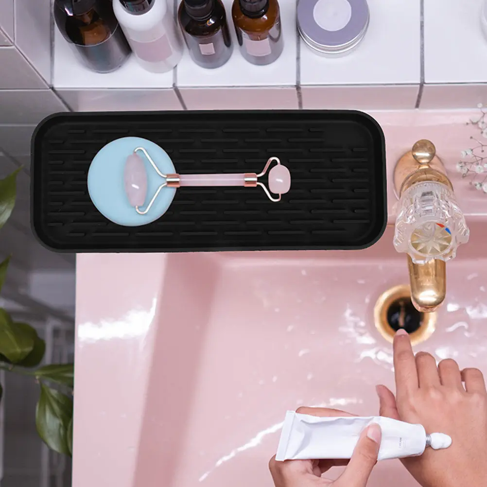 Czarna uniwersalna tacka na korkociąg do toalety, bezkroplowy uchwyt, stojak do przechowywania i suszenia korkociągów w łazience, kuchni i innych miejscach.