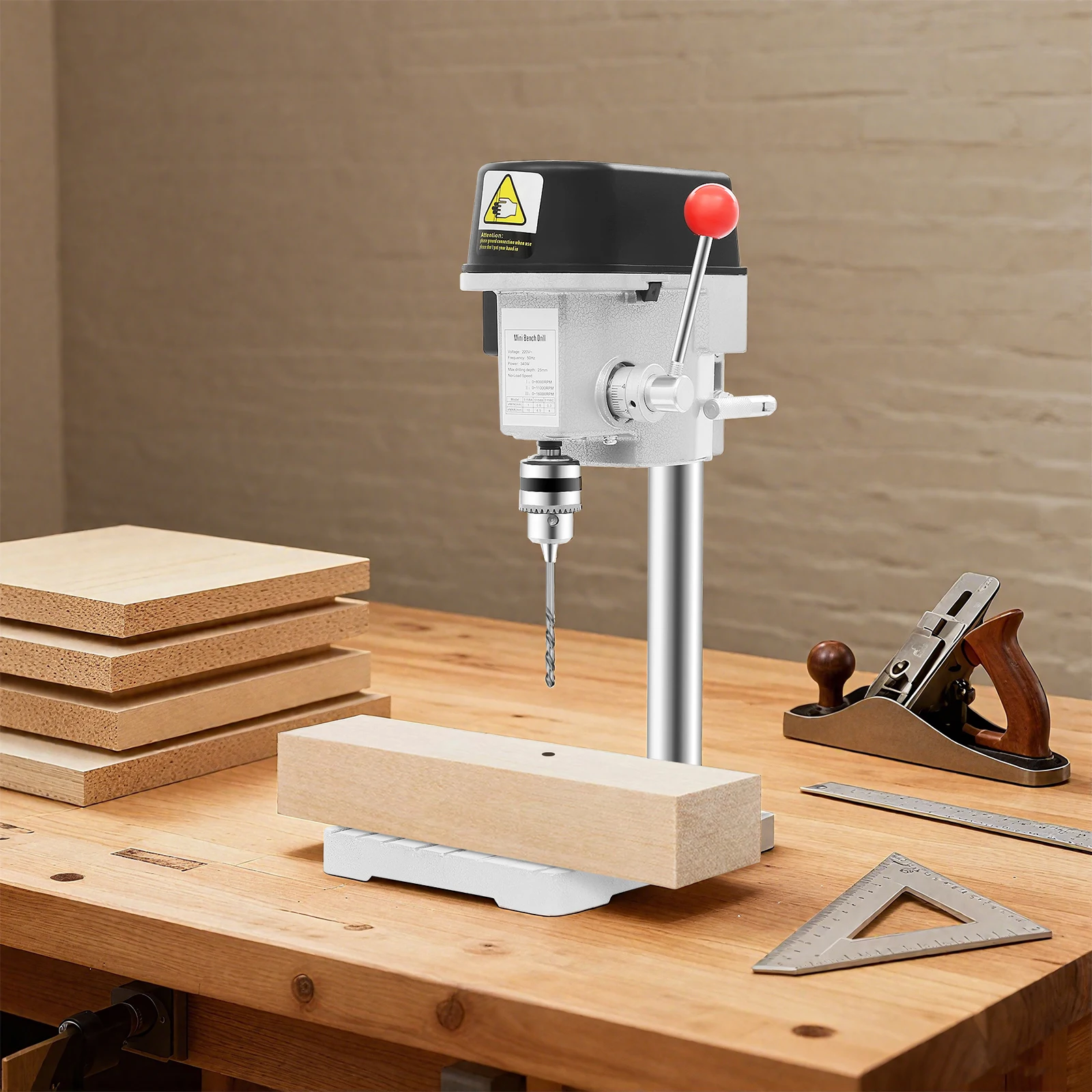 Wiertarka stołowa mini 220V 340W, wtyczka EU, silnik z czystej miedzi, 3 prędkości, 0-16000 obr./min, precyzyjne narzędzie do wiercenia do majsterkowania i warsztatów.