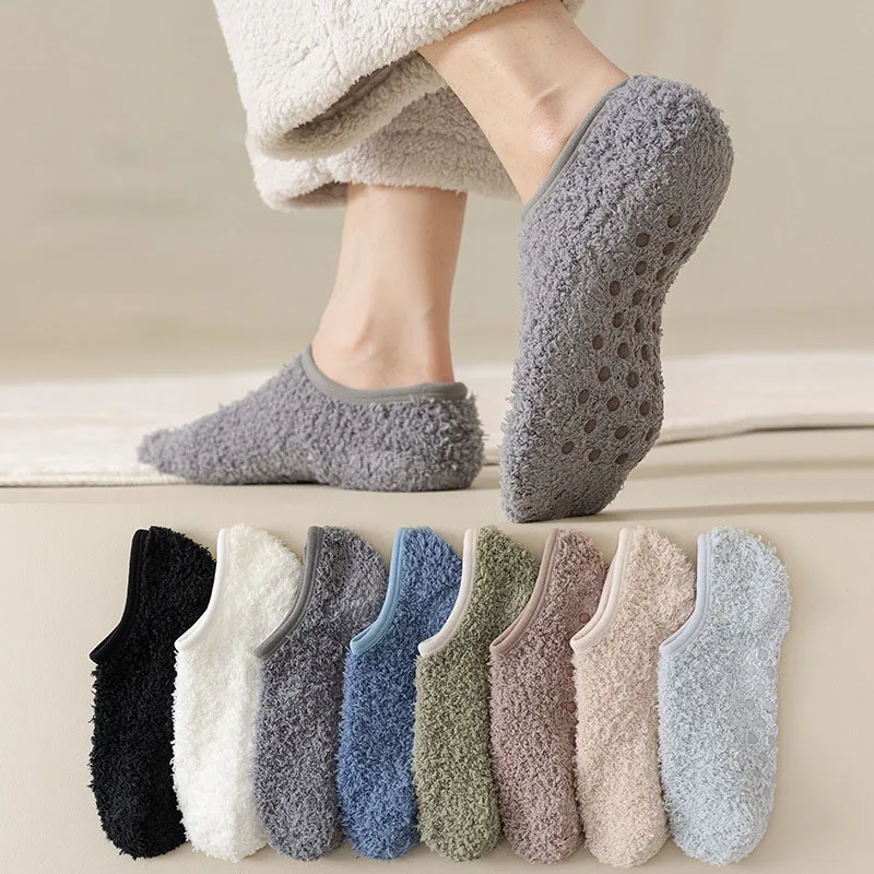 8 Par Męskich Termicznych Zimowych Skarpet Grube Skarpety Domowe z Polaru Koralowego Antypoślizgowe Skarpety do Domu z Prążkowanym Wykończeniem Ciepłe Skarpety na Zimne Podłogi